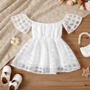 Toddler Girl White Plaid Off-Shoulder Short-sleeve Dress